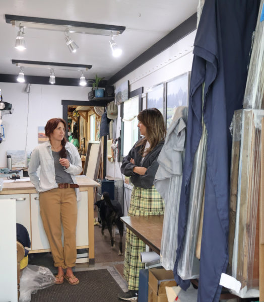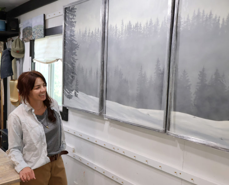 Meinhold looks over a new triptych, hanging in her Brighton Estates studio.