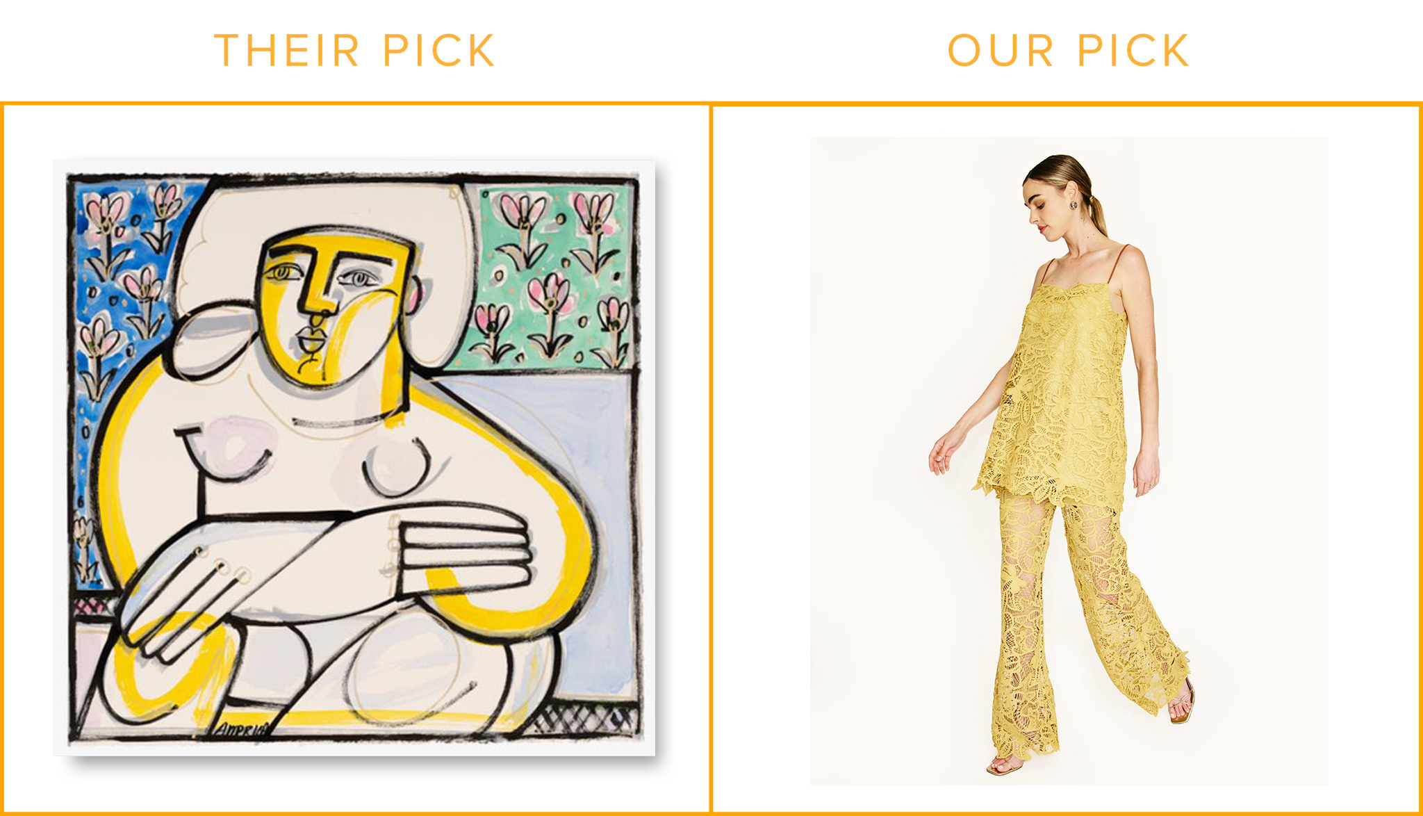 “Is it the first snowfall this past week that got us already in a spring sort of mood?! Nah, I think its the colors and fun abstract, youthful, Picasso-inspired subject matter. Who doesn’t find joy in a floral wallpaper picasso mash-up? I would like to imagine she is pondering what to have for lunch or where her next weekend vacation should be.” – Blaire and Kristen, Flight Boutique