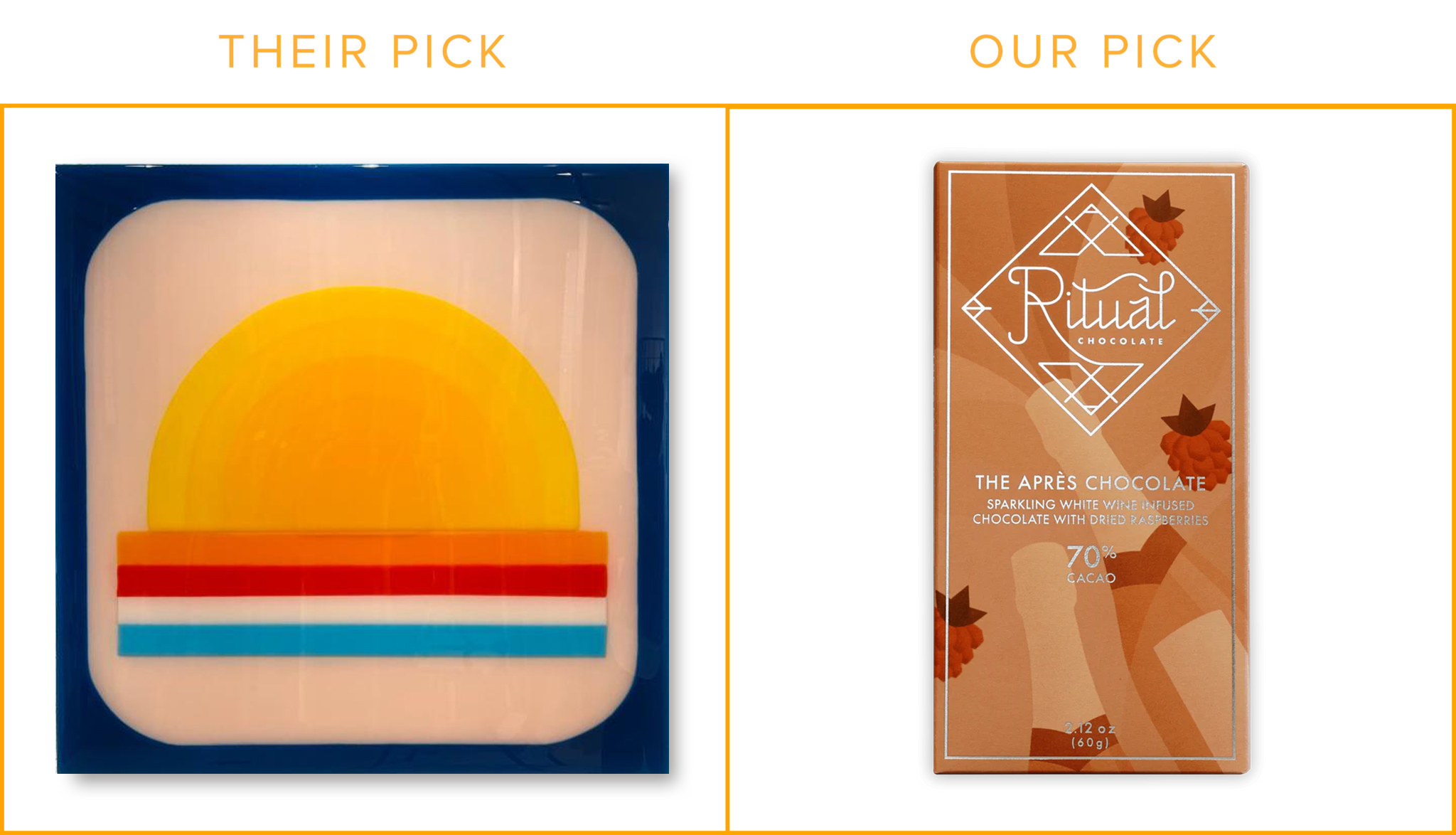 “We love Ritual Chocolate’s The Après Chocolate for its thoughtful craftsmanship and celebratory spirit. Bright, indulgent, and locally made, it’s the kind of treat that feels special without trying too hard — perfect for last-minute gifting. Its playful polish echoes the uplifting energy we love in Lola’s “Yeah Man,” making it a small but memorable holiday delight.” – Gallery MAR
