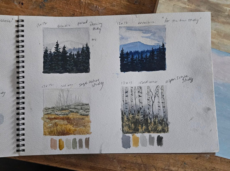 So I experimented first in my sketchbook in watercolor, and then tried again with cold wax, oil, and casein paint. I am still working on how to do the vegetation, but each painting gives me insights. And I guess I need you to know that about my work – it’s all just an experiment. I could lie to you and say I know what I’m doing, but do I? Maybe from the outside it appears that I do, but I don’t always, and I know now that’s ok.