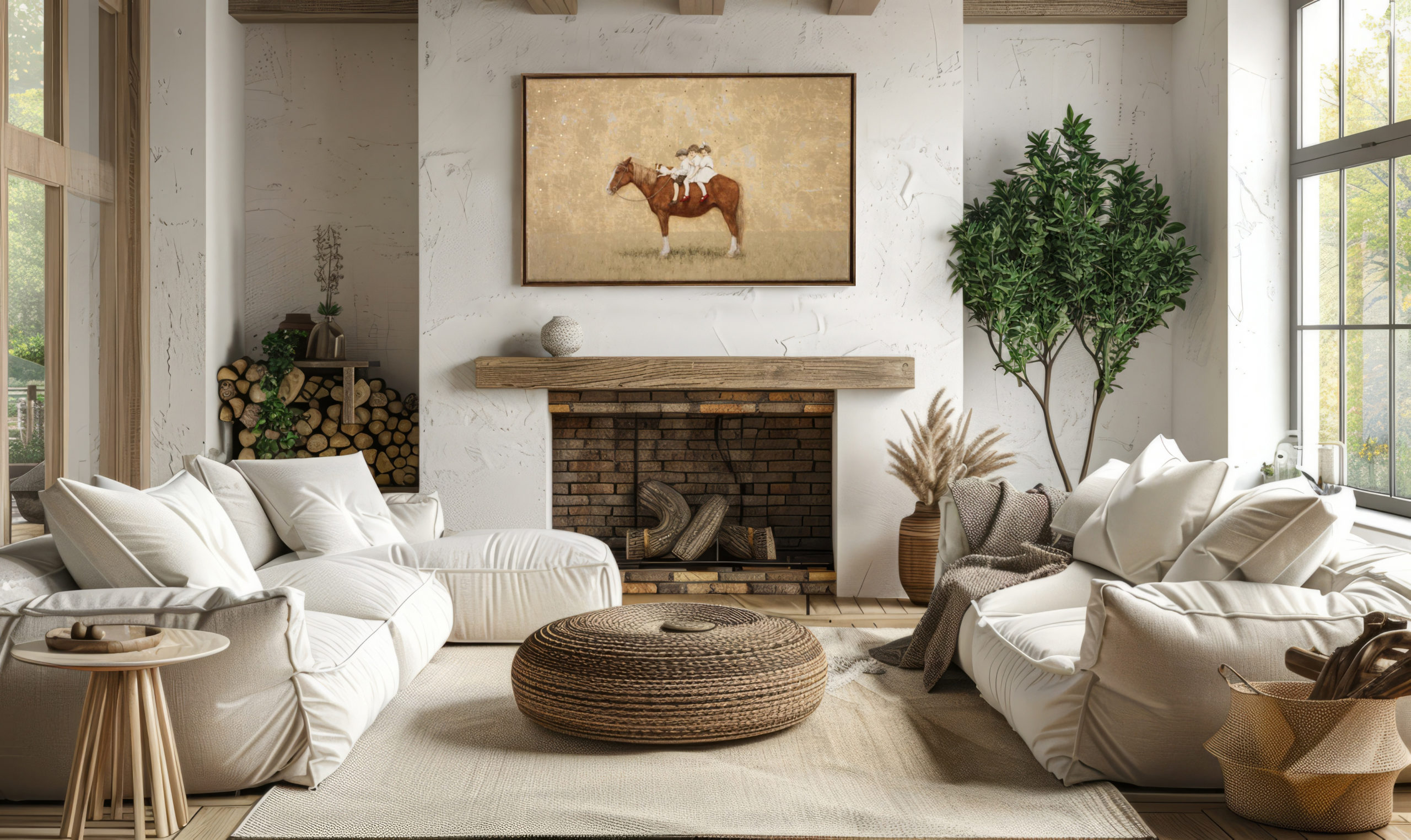 In this edition of Picture This, we’re looking up toward the art that anchors a space gathered around warmth, ritual, and connection. The right piece above a fireplace does more than fill a wall; it becomes a focal point, a visual exhale, and a reflection of how you want your home to feel long after the last fire of the night has burned low.