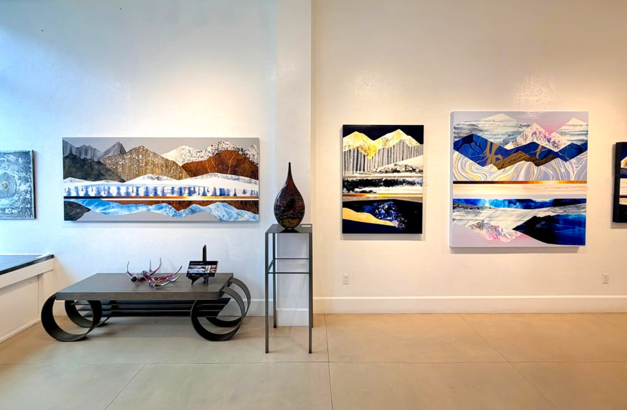 Throughout her 11-year relationship with Gallery MAR, Winkler’s work and exhibitions have consistently pushed forward while remaining grounded in place. “I’m obviously thrilled to be back at Gallery MAR,” she says. “Maren always has an incredible eye for curating the work and the shows, and I love Gallery MAR’s exhibition openings. It always feels like a gathering of friends and a really good time.” That warmth was palpable at the opening on historic Main Street, where collectors gathered amid glowing peaks and luminous skies, celebrating both the artist’s return to Gallery MAR and the adventurous spirit of the work itself.