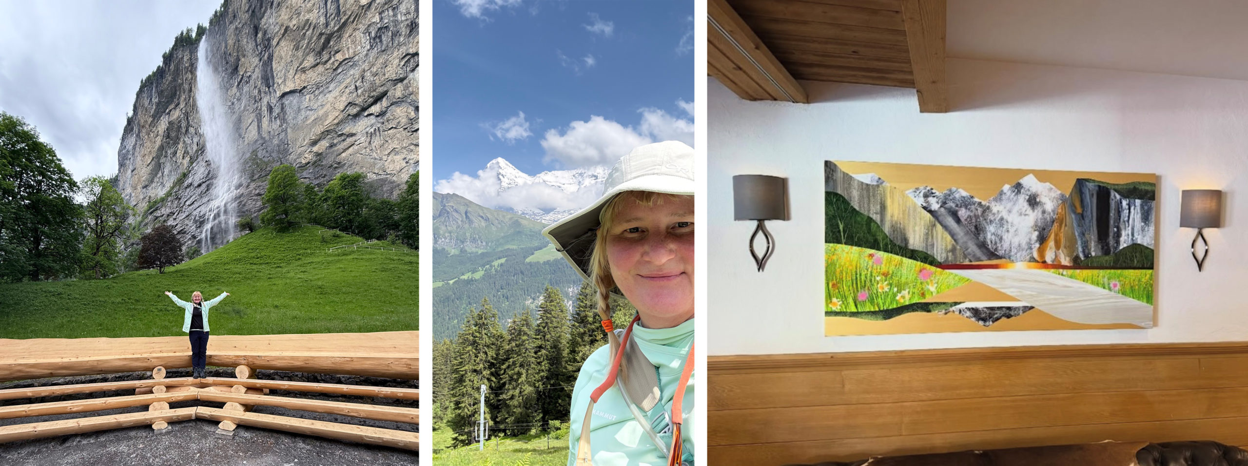 Sarah Winkler exploring Lauterbrunnen Valley in Switzerland for her commission at the Hotel Oberland, entitled “Staubbach Falls, Lauterbrunnen Valley”
