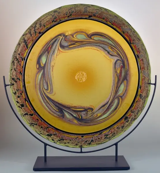 Title: Jupiter Mandala – Amber with Gold Leaf