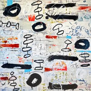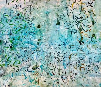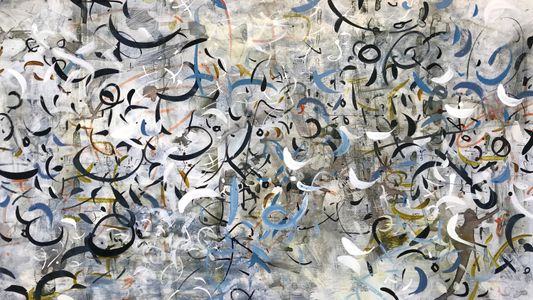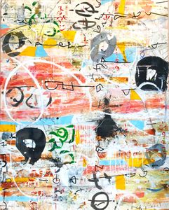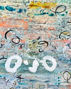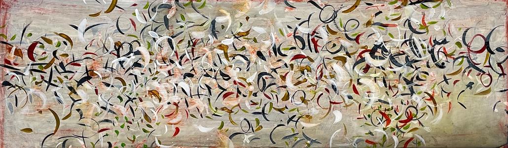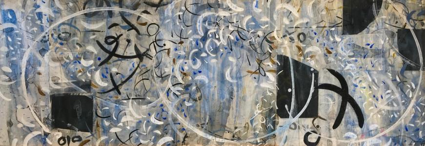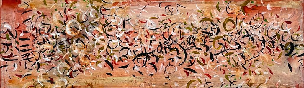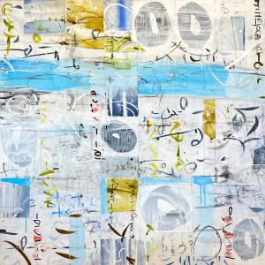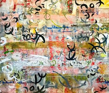 Environment, words, calligraphy, celestial movements, time, symbols, history, music, elemental energy are some of the many influences on my artwork.While it may appear that I am simply an abstract painter using letterforms, there are meanings beneath the surface. I don’t offer simple explanations for my markings; understanding often must be intuited. Titles are very important in entering the world of my paintings, as they provide a key to my imagery and is related to the main theme.
