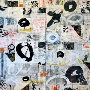 My art is influenced by my history. I was a bookbinder and then a book artist for about thirty years, printmaking, and painting at the same time. My techniques are inspired by my experience with paper, cutting accurately, mono-printing, collagraphs, calligraphy, and paste painting.I now use acrylic as the main medium, but often start with paper which is attached to the panel as the first layer. Many layers of paint and imagery are required for the results. The first layers are covered up, but never fully hidden. My process is largely additive, but sometimes subtractive.Finally, I use many layers of thin acrylic to create a smooth surface which helps illuminate the imagery.