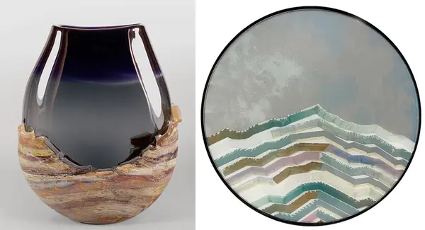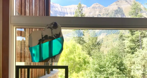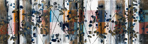 For her latest collection of work at Gallery MAR, contemporary landscape painter, Sarah Winkler, is exploring the relationship between high altitude forests and the mountain geology that surrounds their habitat and sustains their existence. Chromatically rich Aspen forests and dense green conifer forests undulate over her large scale paintings. Winkler depicts the landscape both above and below an imaginary horizon line. Her reflective works emphasize the processes of nature and inter-connectivity of life sustaining resources in mountainous environments. Her layered, hard edge paintings filled with luminous abstract painted textures, condense and connect features of her mountainous landscapes.